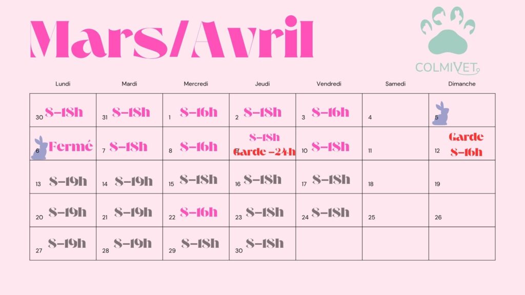 Heures d’ouverture exceptionnelles en mars/avril 2026:
