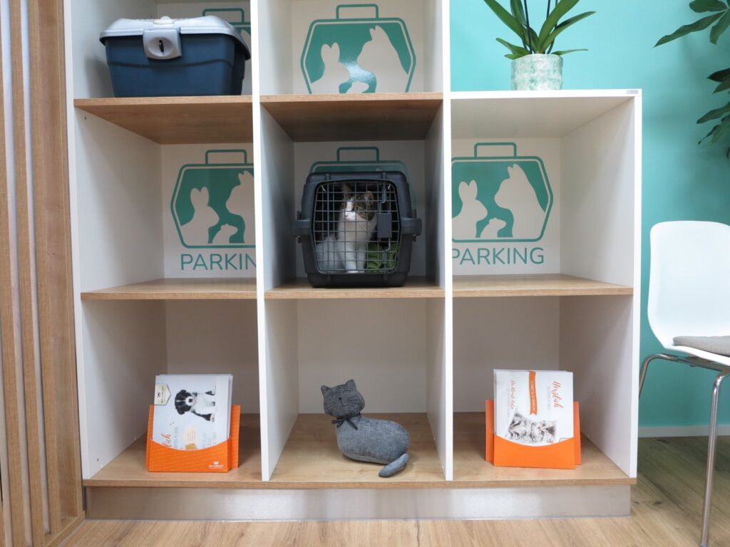Nous faisons tout pour éviter les longues attentes et limiter le stress des animaux. Toutefois, si un temps d’attente est nécessaire, notre salle d’attente est aménagée pour le bien-être de tous : une zone est dédiée aux chiens 🐕, l’autre aux chats 🐈 et aux petits mammifères 🐇🐹🐭. Les odeurs et les regards sont ainsi séparés. De plus, les chats ainsi que les petits mammifères disposent d’espaces en hauteur pour se sentir en sécurité.