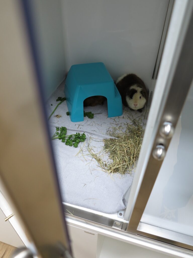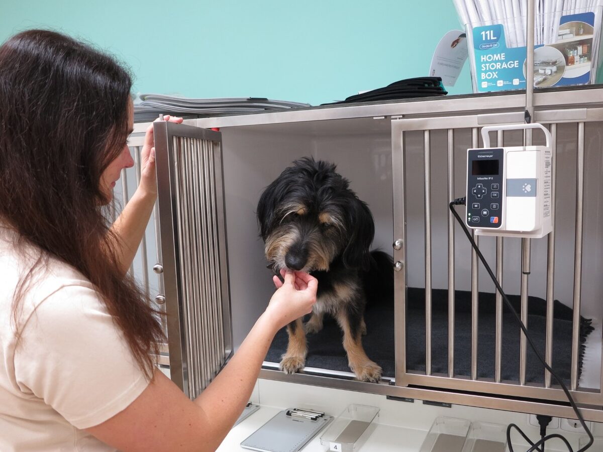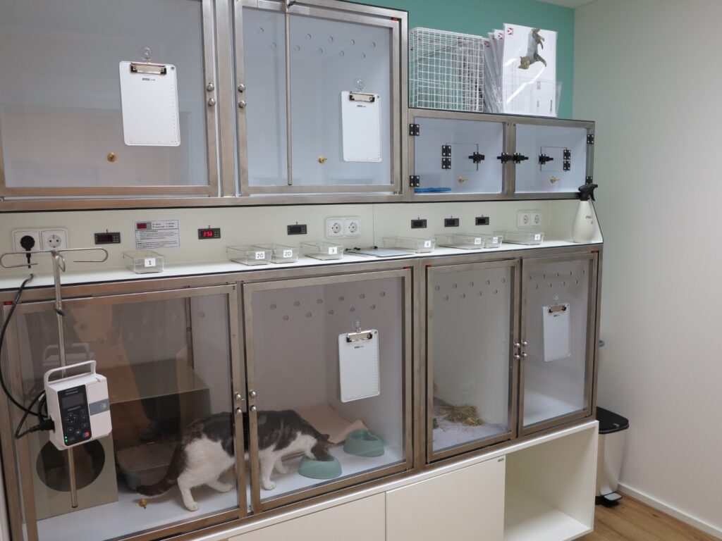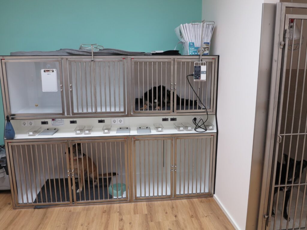 Les cages sont spacieuses et équipées d’un chauffage au sol. L’éclairage réglable nous permet de créer une ambiance douce et apaisante pour nos patients.