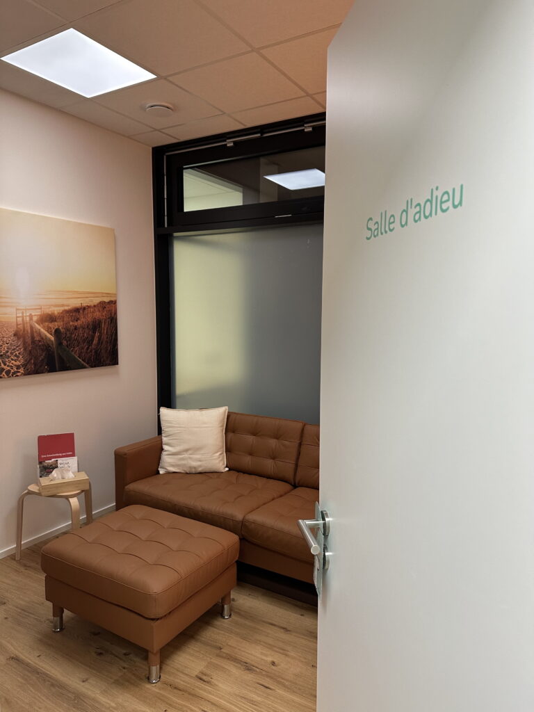 Parce que ce moment mérite une attention particulière, nous lui avons dédié une pièce à part, spécialement pensée pour cela : la salle d’adieu.
